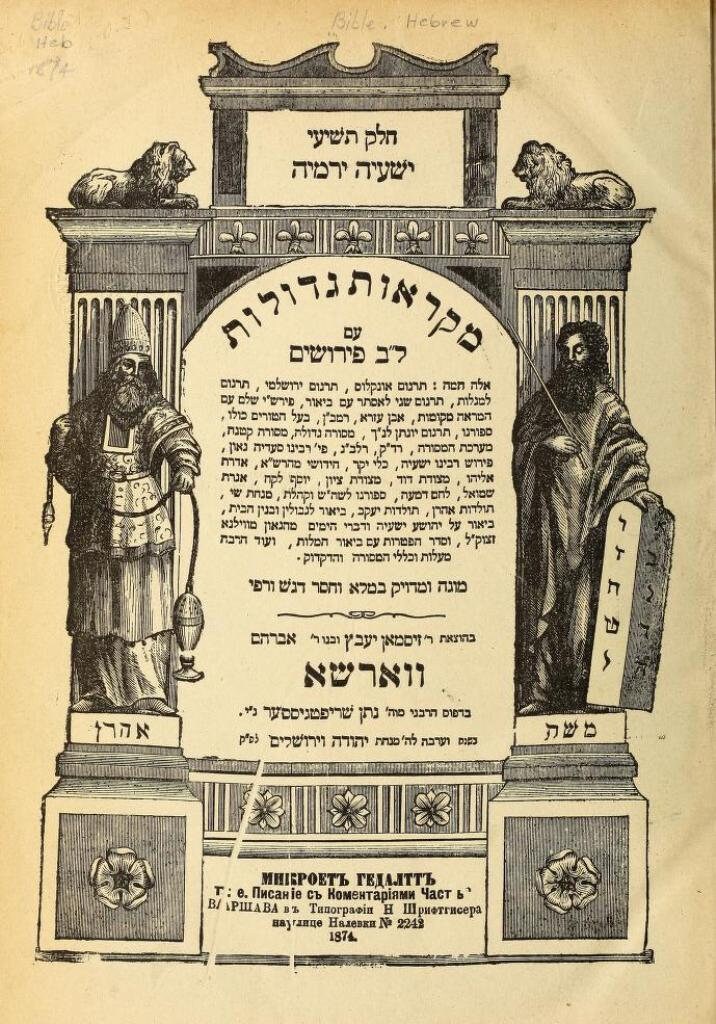 The Old Testament, with Aramaic versions (Targum), the commentaries of Rash Abraham Ibn Ezra, David Kimh and others Vols. 1 - 10 (1874)