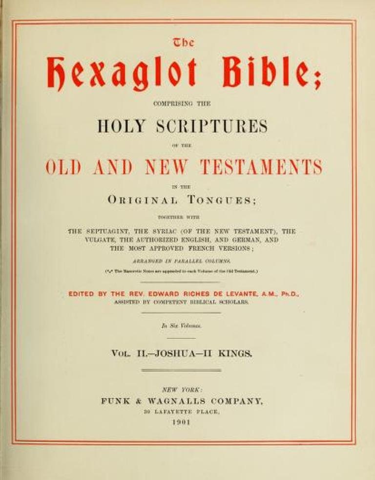 The hexaglot Bible - comprising the Holy Scriptures of the Old and New Testaments in the original tongues Vols. 1 - 6 - E. Riches de Levante (1901)