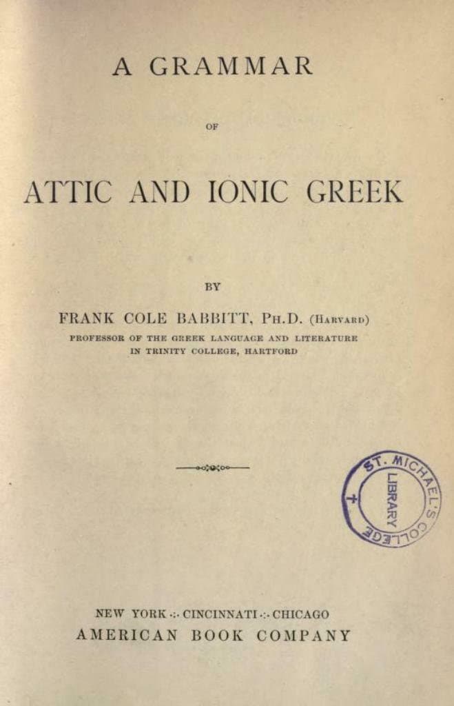 A grammar of Attic and Ionic Greek - F. Babbitt (1902)