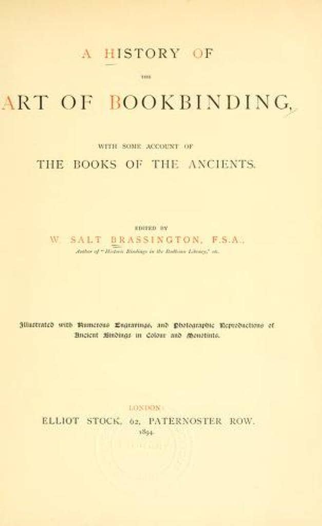 A history of the art of bookbinding. With some account of the books of the ancients by W. Brassington (1894)