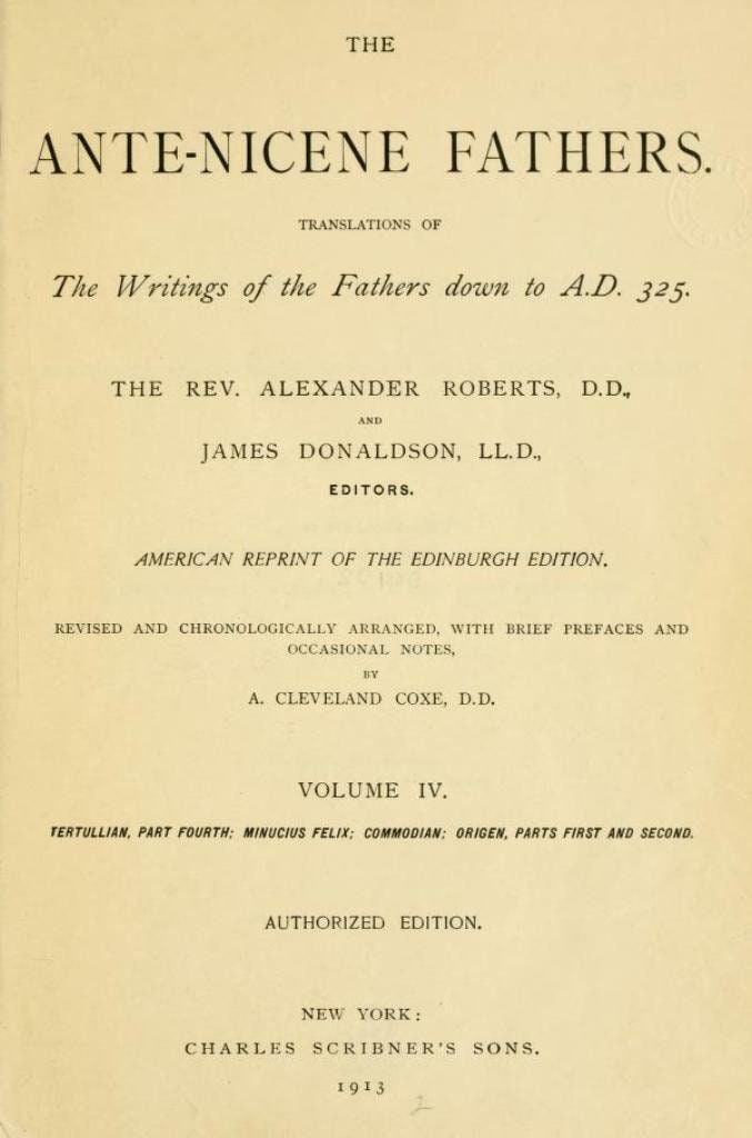 The Ante-Nicene fathers. translations of the writings of the fathers down to A.D. 325. Vol. 4 - A. Roberts (1913)