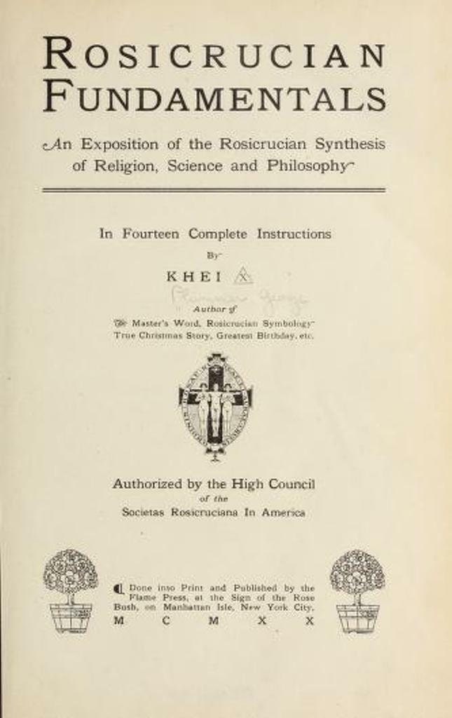 Rosicrucian fundamentals - an exposition of the Rosicrucian synthesis of religion, science and philosophy - G. W. Plummer (1920)