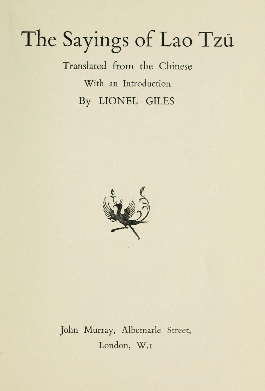 The sayings of Lao Tzu - L. Giles (1905)