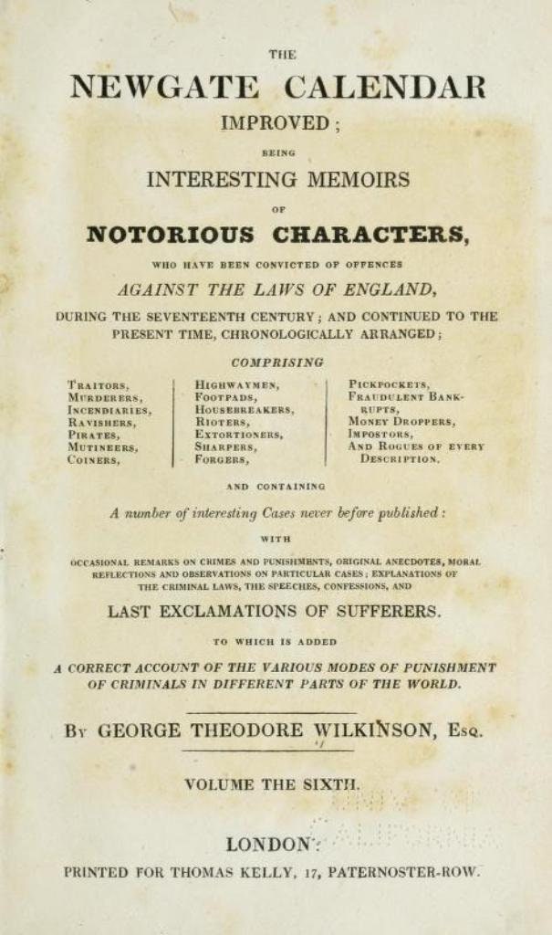 The Newgate calendar improved; being interesting memoirs of notorious characters who have been convicted of offences against the laws of England Vols. 1 - 6 - G. T. Wilkinson (1836)