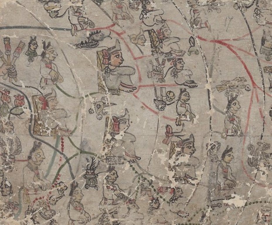 The Dresden Codex comprises 78 pages of Mayan hieroglyphics, numerals and figures which provide accurate astronomical tables, ritual and divination calendars, calculations of the phases of Venus, eclipses of the sun and moon, instructions relating to New Year ceremonies, and descriptions of the locations of the Rain God, which culminate in a full-page miniature showing a great deluge. The codex has played a key role in the deciphering of Mayan hieroglyphics and the understanding of the Mayan Calendar.