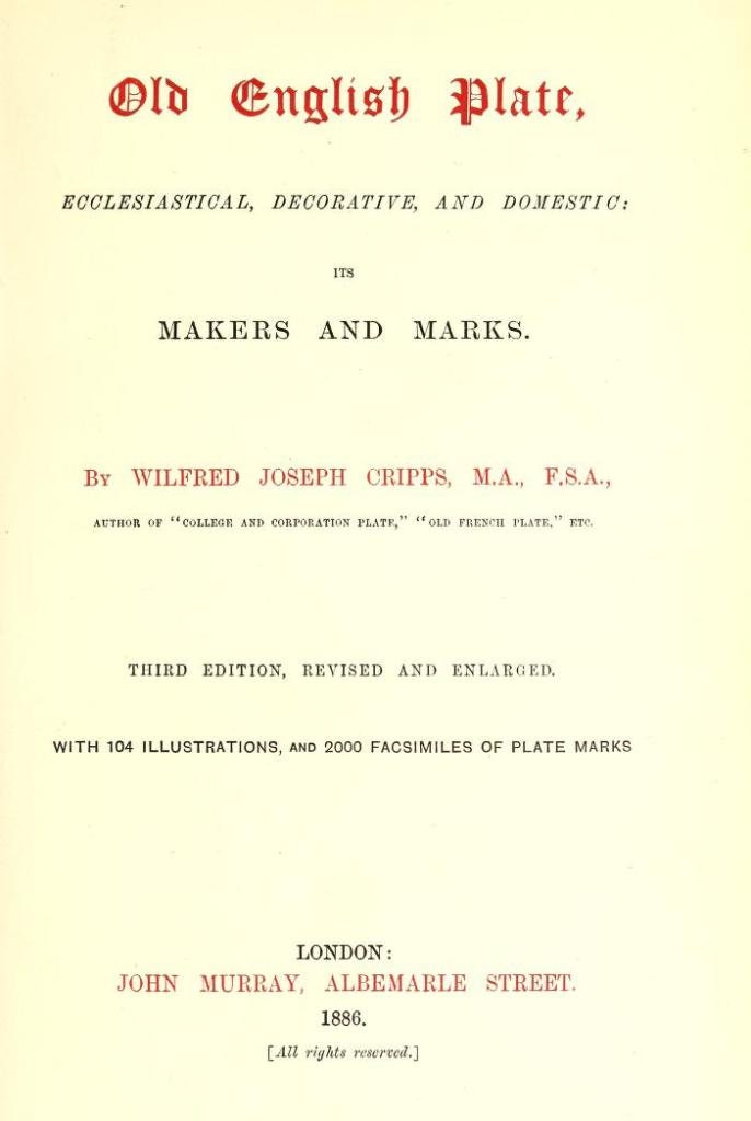 Old English plate, ecclesiastical, decorative, and domestic - its makers and marks - W. J. Cripps (1878)
