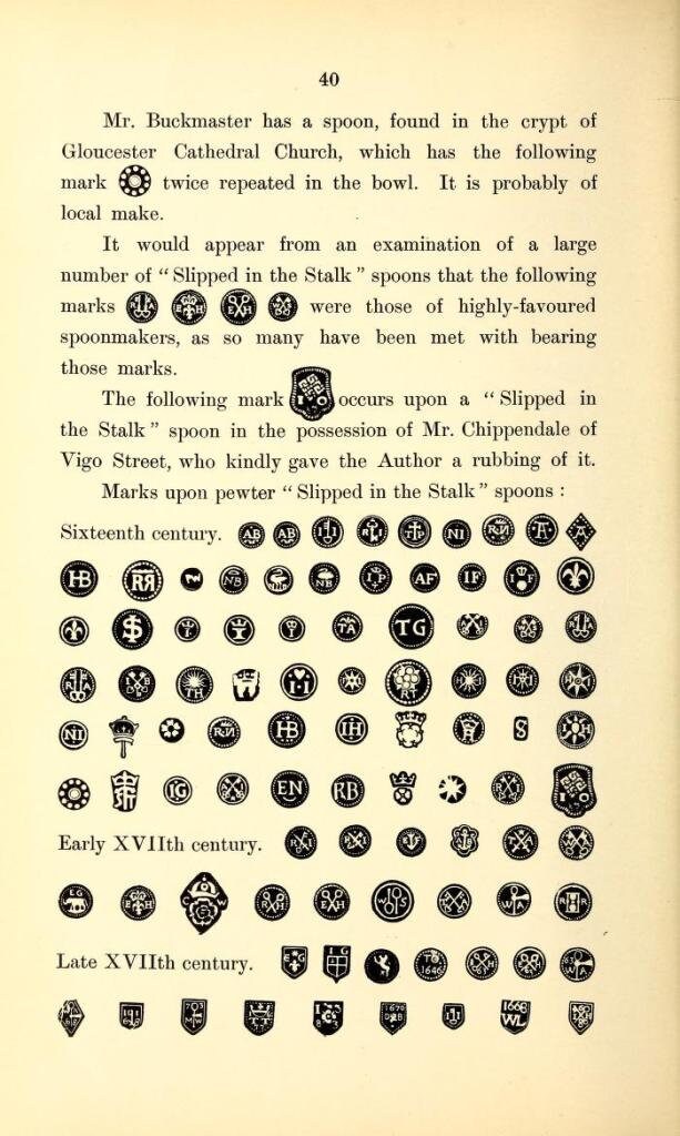 Old base metal spoons - illustrations and marks - F. Price (1908)