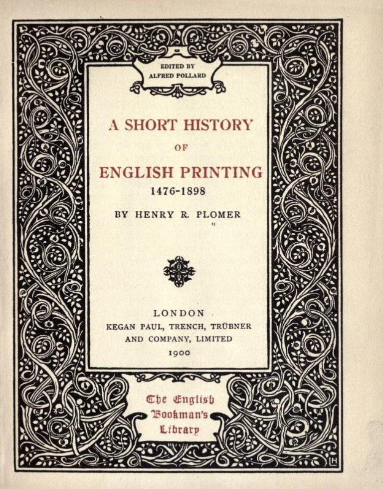 A short history of English printing, 1476-1898 - H. R. Plomer (1900)