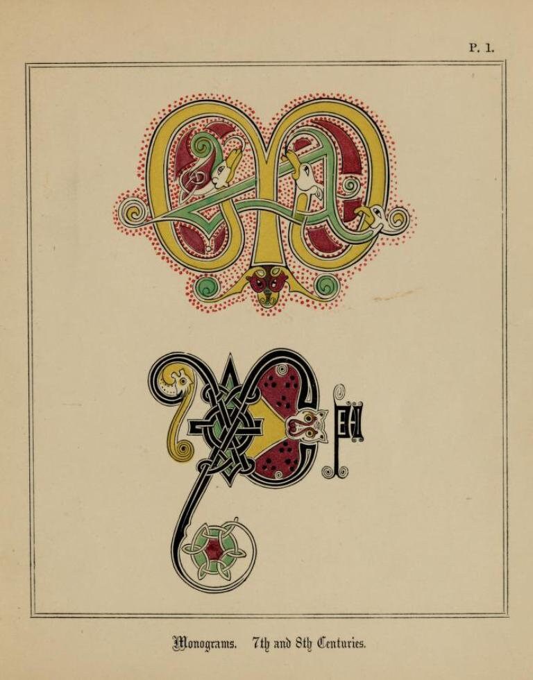 Portfolio of ancient capital letters, monograms, quaint designs, etc. etc. coloured and tinted; eighteen plates (1859)