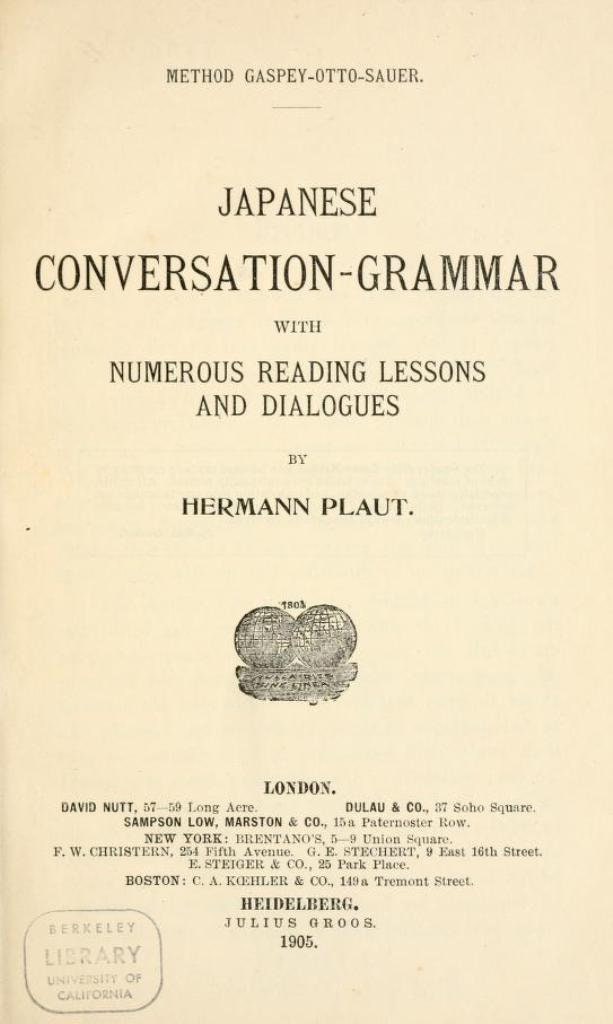 Hossfeld's Japanese grammar Vol. 1 - H. Weintz (1904)
