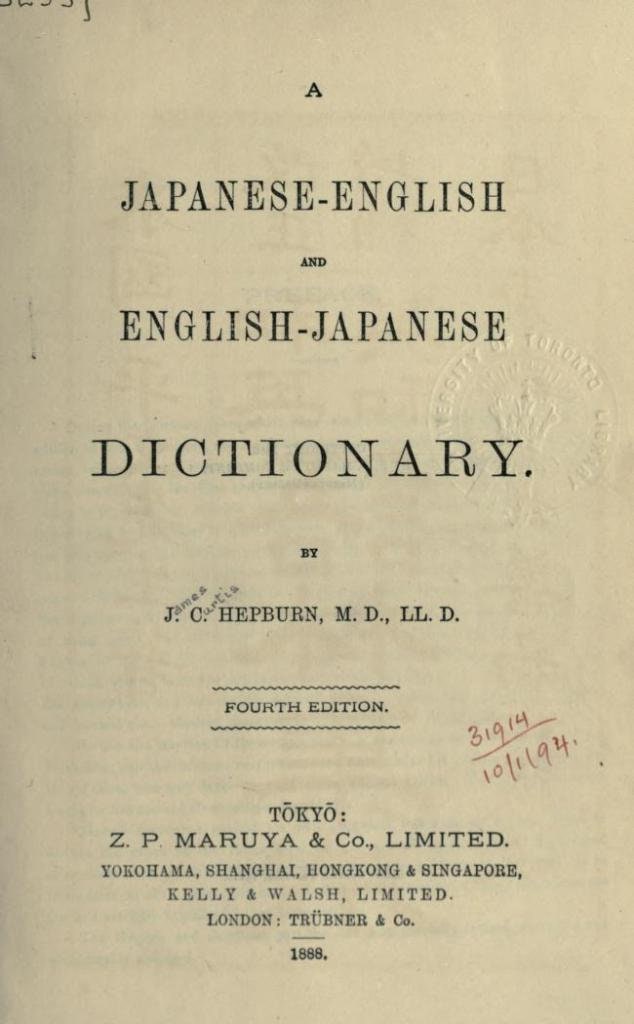 A Japanese-English and English-Japanese dictionary - J. Hepburn (1888)