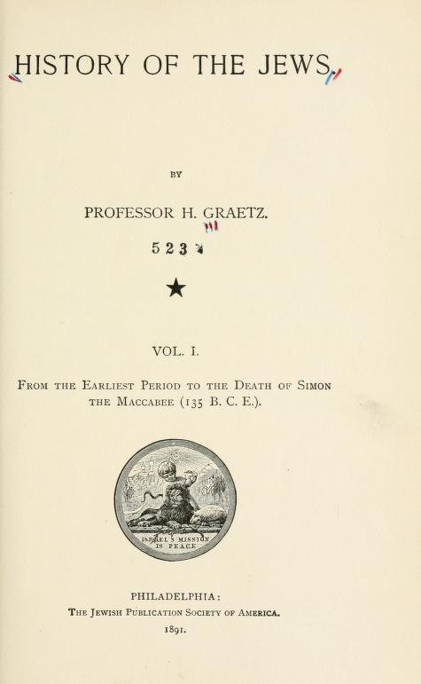 History of the Jews Vol. 1 by H. Graetz (1891)