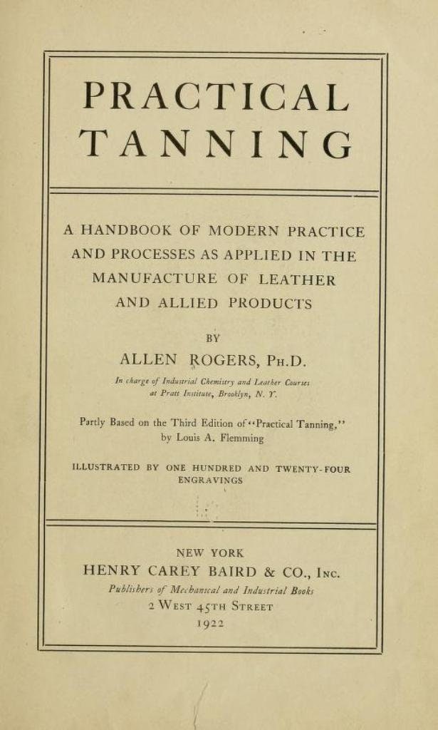 Practical tanning - a handbook of modern practice and processes as applied in the manufacture of leather and allied products by A. Rogers (1922)
