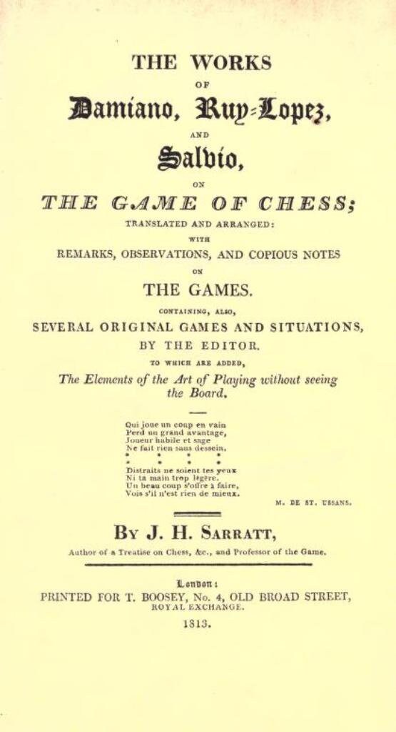 The works of Damiano, Ruy-Lopez, and Salvio on the game of chess by J. H. Sarratt (1813)