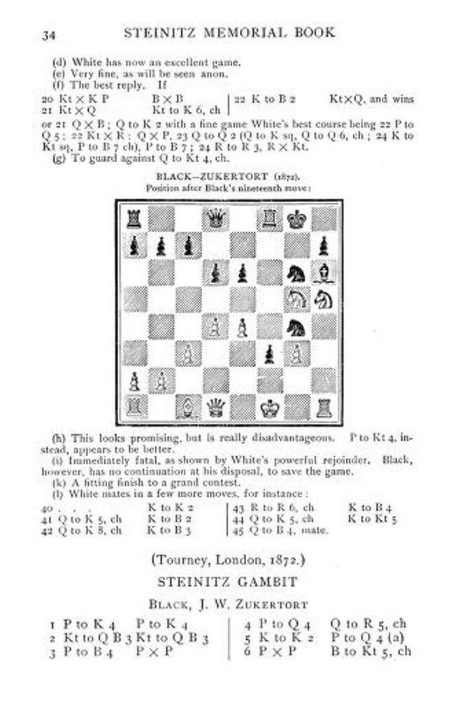 A memorial to William Steinitz; containing a selection of his games chronologically arranged with an analysis of play by C. Devide (1901)