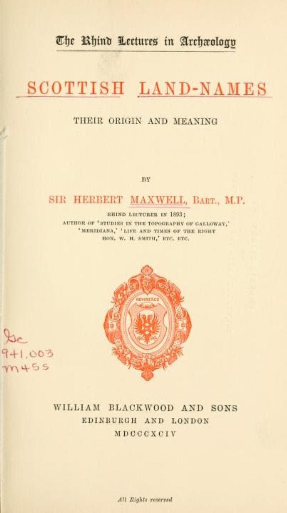Scottish land-names; their origin and meaning - H. Maxwell (1894)