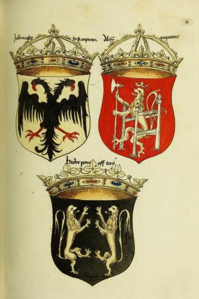 Workes of armorie deuyded into three bookes, entituled, the Concordes of armorie, the Armorie of honor, and of Coates and creastes by J. Bossewell (1572)