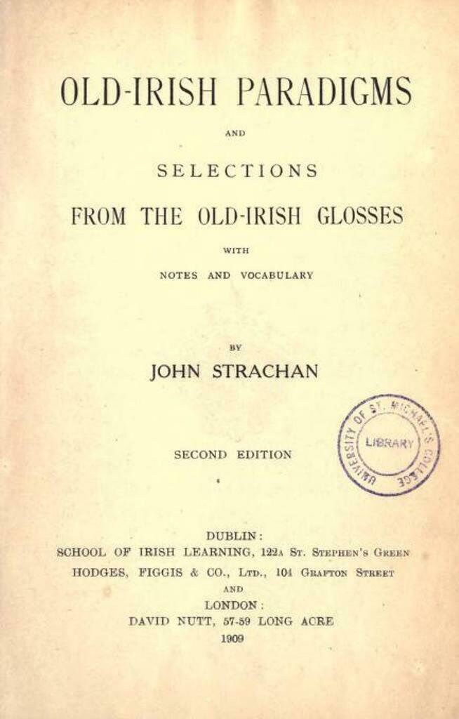 Old Irish paradigms and Selections from the old-Irish glosses, with notes and vocabulary - J. Strachan (1909)
