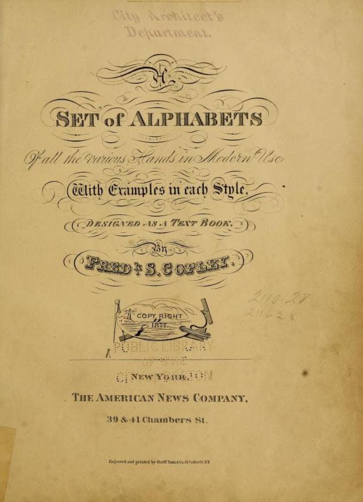 A set of alphabets of all the various hands of modern use with examples in each style, designed as a text book by F. Copley (1877)