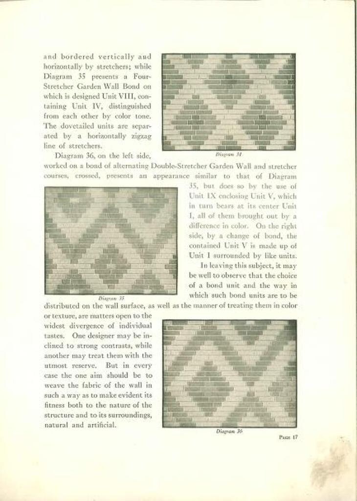 Bonds and mortars in the wall of brick - an essay on design in patterns for brickwork by Hydraulic-Press Brick Co. (1914)