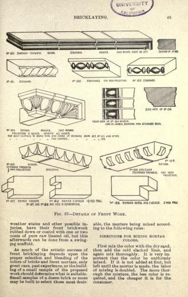 Brickwork, a practical treatise embodying the general and higher principles of bricklaying, cutting and setting by F. Walker (1891)