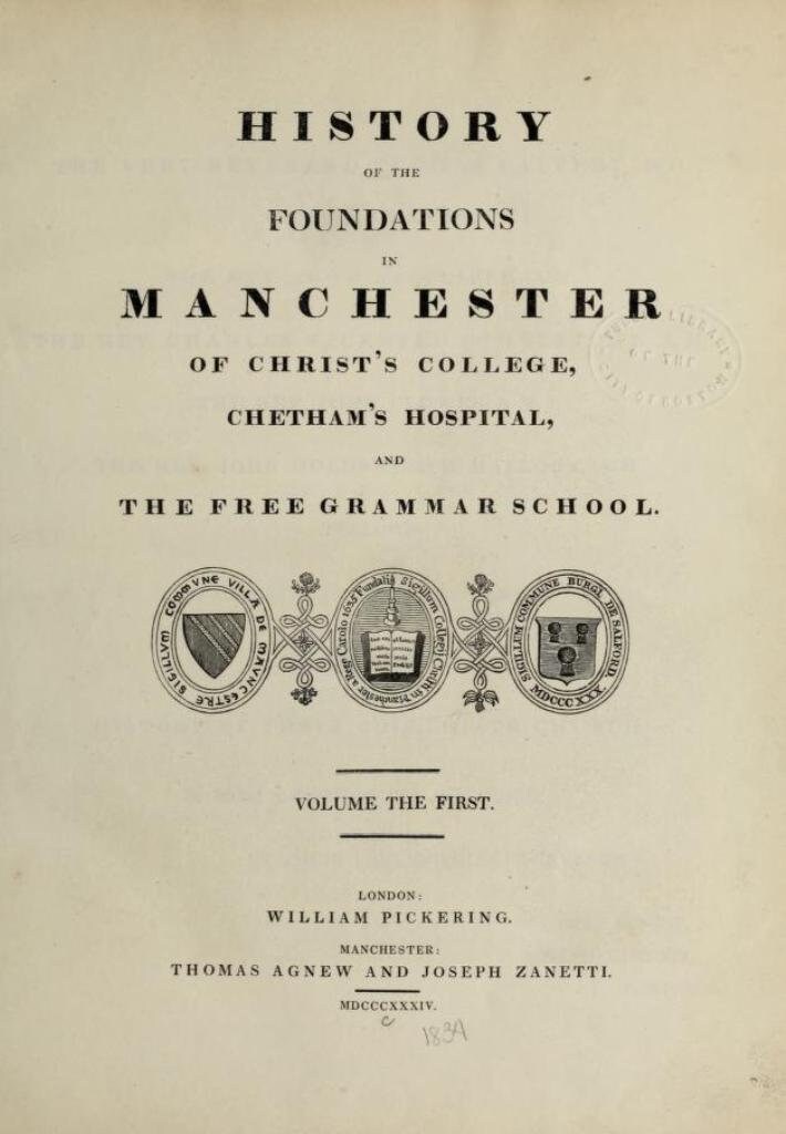 History of the Foundations in Manchester of Christ's College, Chetham's Hospital (and Library, with a genealogical account of the Founder), and the Free Grammar School Vol. 1 - S. Hibbert (1834)