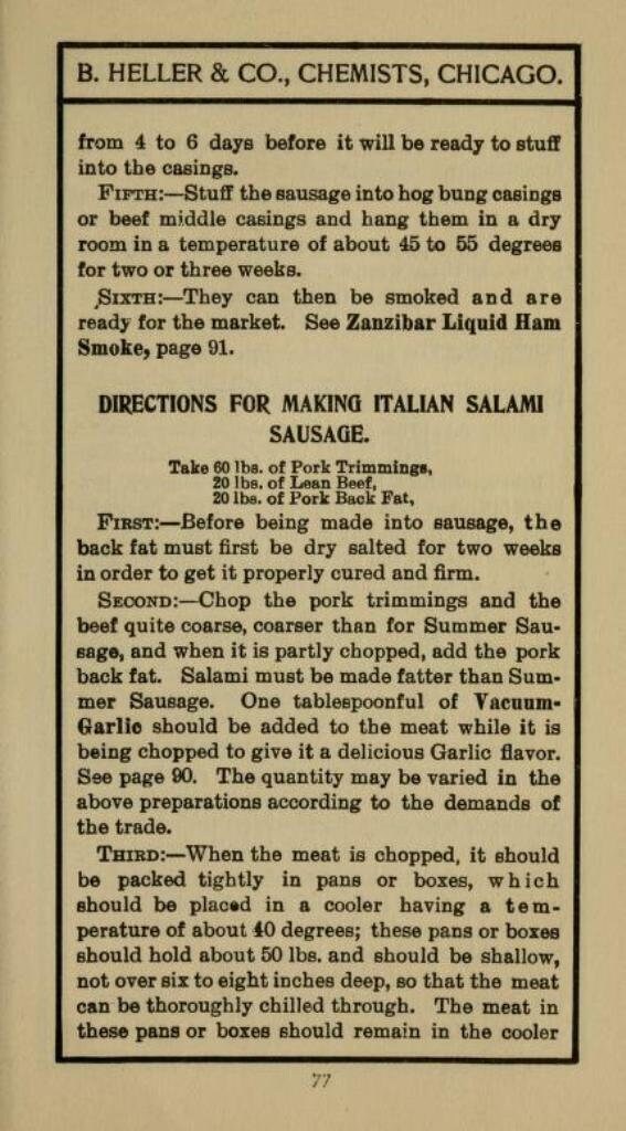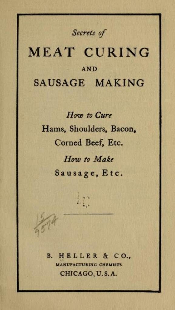 Secrets of meat curing and sausage making - how to cure hams, shoulders, bacon, corned beef, etc., and how to make all kinds of sausage, etc. - B. Heller & Co. (1922)