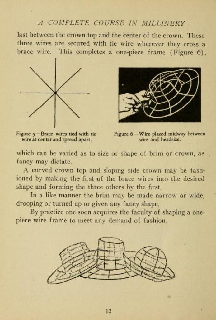 A complete course in millinery; twenty-four practical lessons detailing the processes for mastering the art of millinery; a text book for teachers of millinery by J. Bottomley (1919)