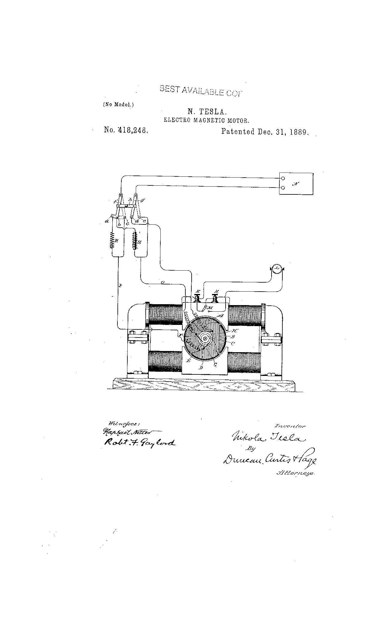 Transmission of power - polyphase system - Tesla patents - N. Tesla