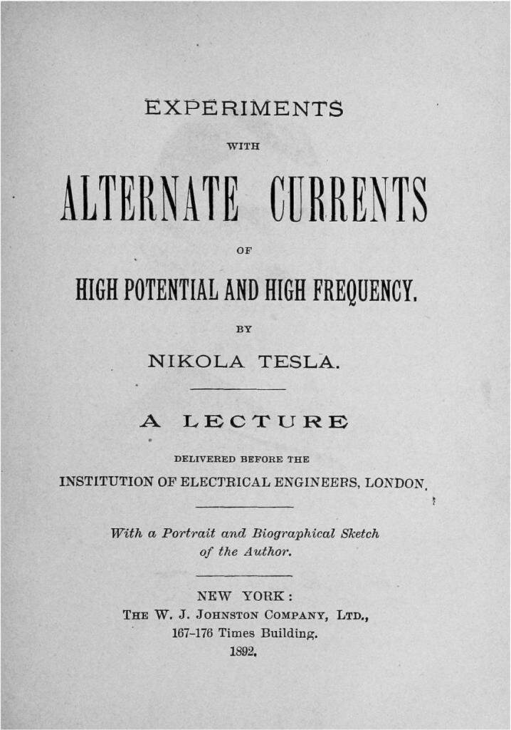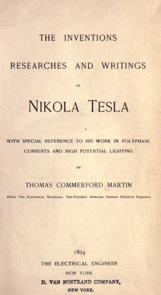 The inventions, researches and writings of Nikola Tesla, with special reference to his work in polyphase currents and high potential lighting