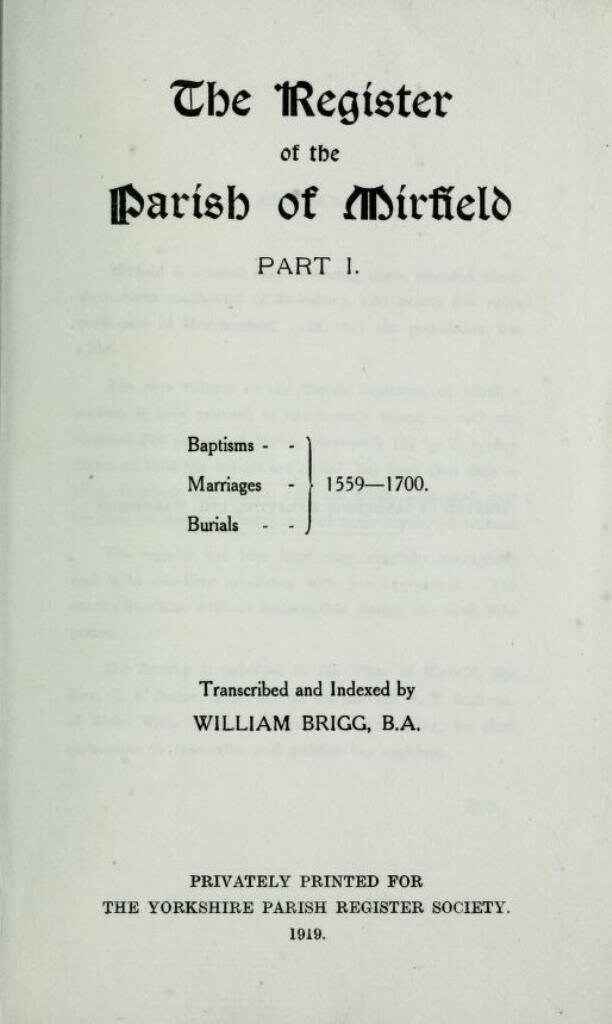 The parish registers of Mirfield, Co. York. pt. 1 (1919)