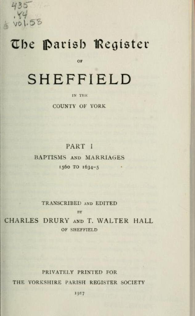 The first book of the marriage, baptismal, and burial registers Ecclesfield Parish Church 1558-1619 - A S Gatty 1878