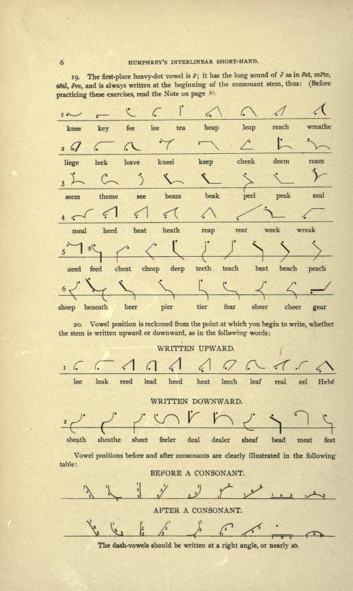 Interlinear short-hand (Pitman phonography) for self instruction and use in schools and colleges by F. S. Humphrey (1893)