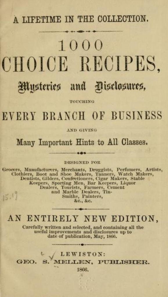 1000 choice recipes, mysteries and disclosures, touching every branch of business - G. S. Mellen (1866)