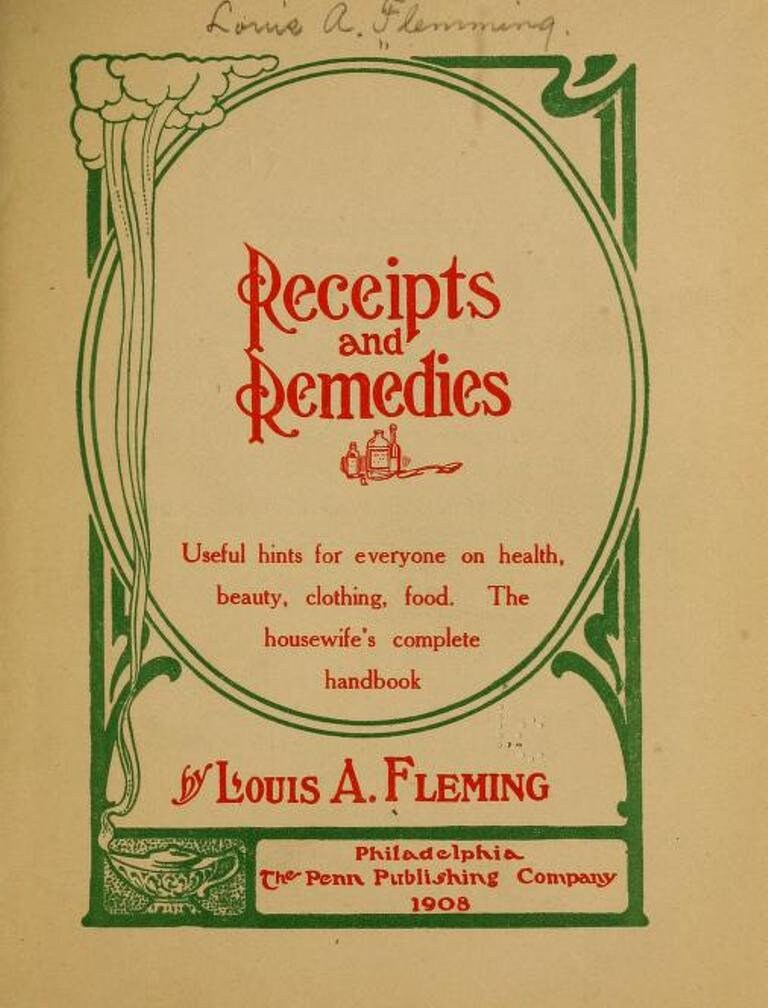 Receipts and remedies; useful hints for everyone on health, beauty, clothing, food. The housewife's complete handbook - L. A. Flemming (1908)