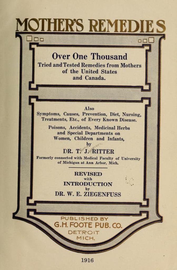 Mother's remedies - over one thousand tried and tested remedies - T. J. Ritter (1916)