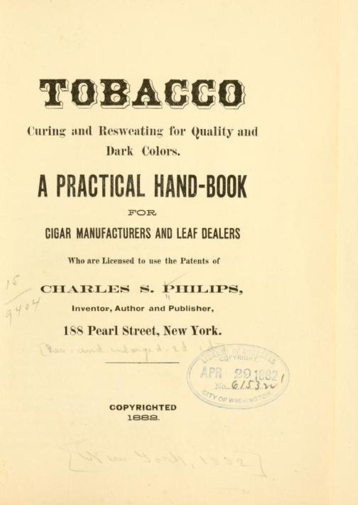 Tobacco curing and resweating for quality and dark colors by C. Philips (1880)