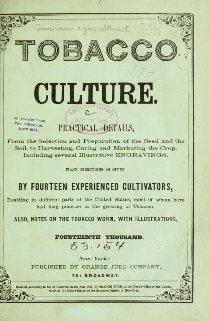 Tobacco culture adpated to the northern section of the United States (1864)