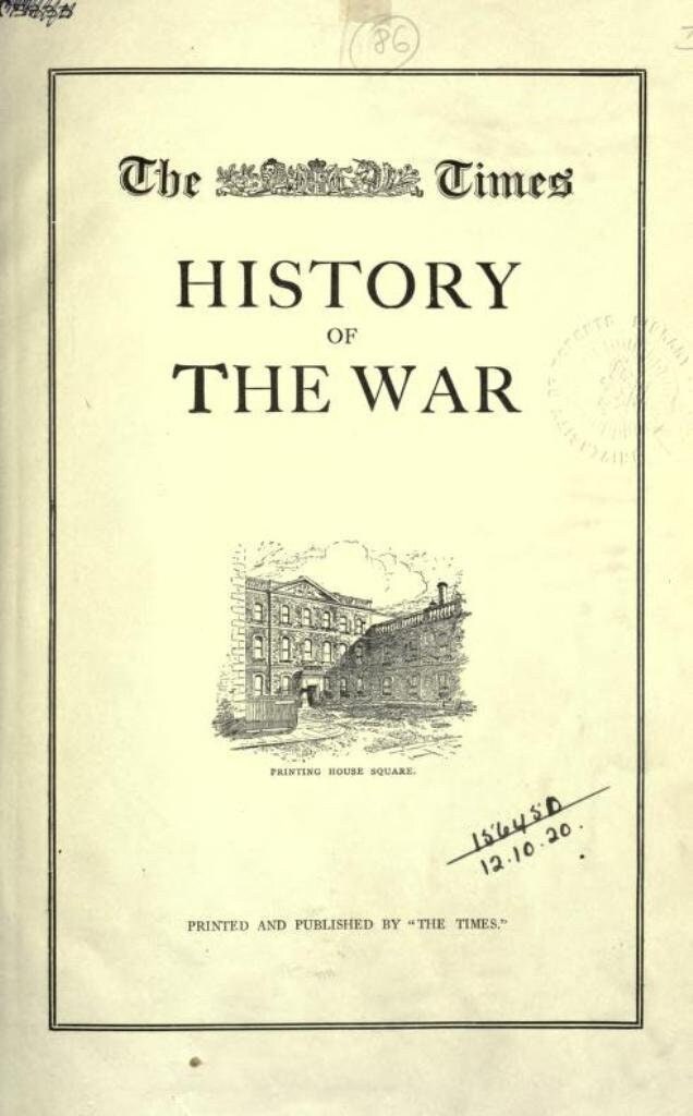 When war was declared in August 1914 The Times under its chief editor, Wickham Steed, embarked on an extraordinary project. As well as authoritative daily war reports in the paper itself, a separate weekly supplement would be produced, with 40 extra, illustrated pages of in-depth analysis. The result was The Times History of the War, collected into 22 massive volumes in 1921: 11,000 pages; 6 million words; thousands of photographs, graphics, illustrations and maps.