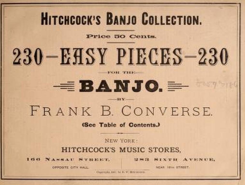 230 easy pieces for the banjo - comprising a choice collection of polkas, waltzes, clog hornpipes, reels, jigs, walkarounds, songs, etc. by F. Converse (1887)