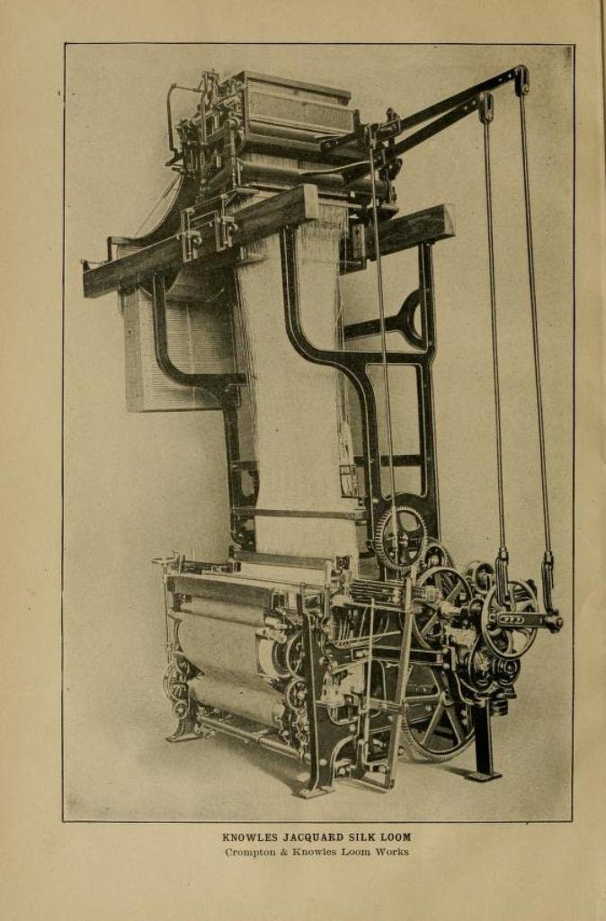 Jacquard machine; analyzed & explained the preparation of Jacquard cards & practical hints to learners of Jacquard designing by E. A. Posselt (1893)