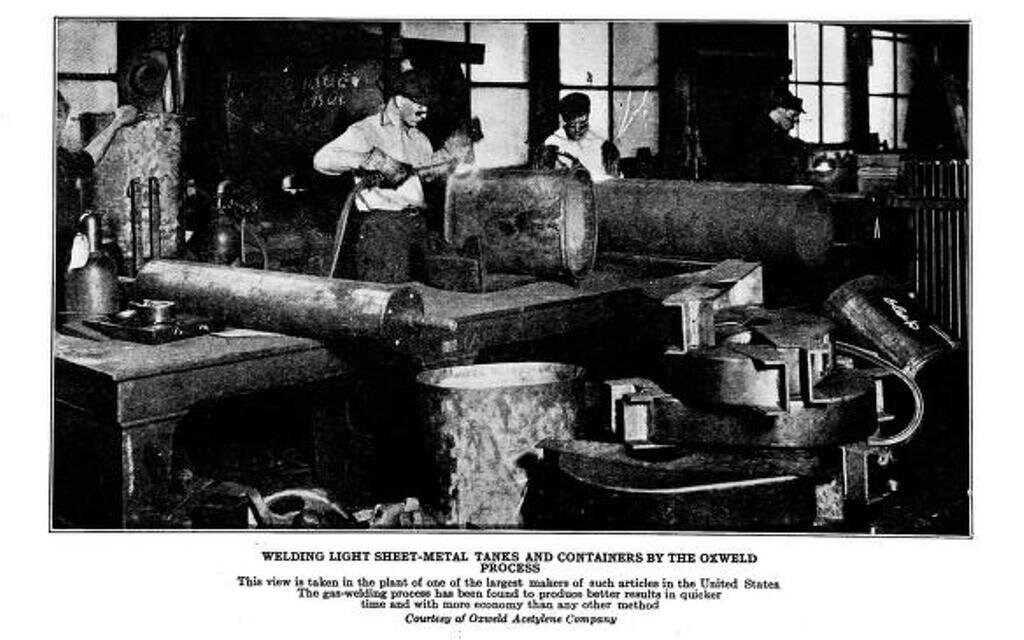 Modern methods of welding as applied to workshop practice, describing various methods oxy-acetylene welding, electric seam welding - J. H. Davies (1922)
