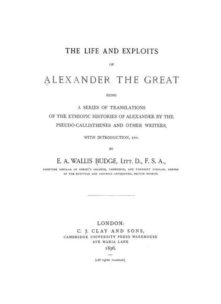 The life and exploits of Alexander the Great being a series of translations of the Ethiopic histories of Alexander by the Pseudo-Callisthenes and other writers - E. A. W. Budge (1896)