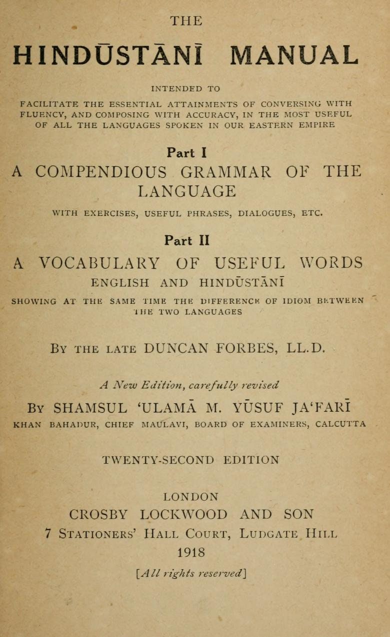 The Hindustani Manual (4th edition) - D. Forbes (1860)