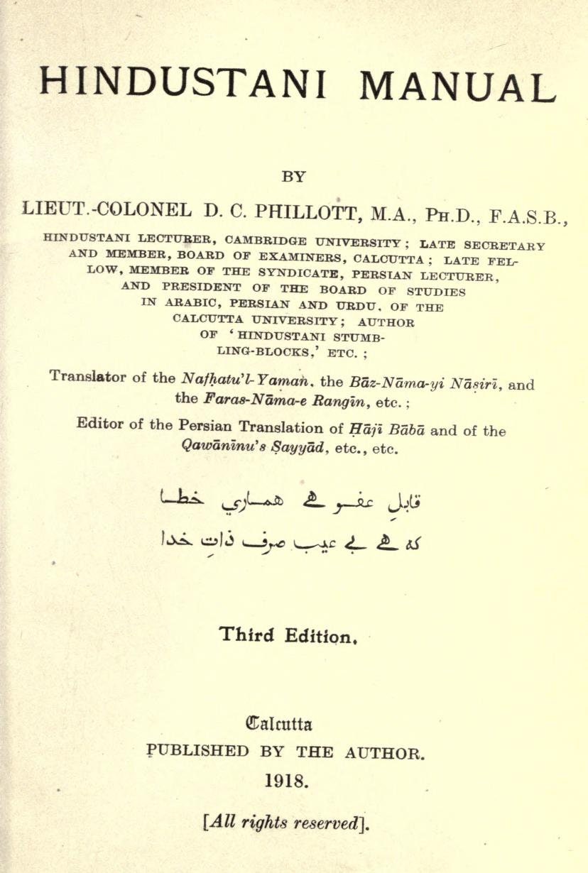 Hindustani manual (3rd edition) - D. Phillott (1918)