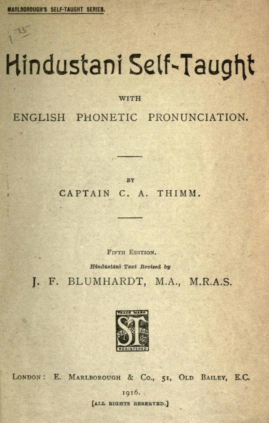 Hindustani self-taught with English phonetic pronunciation - C. Thimm (1916)