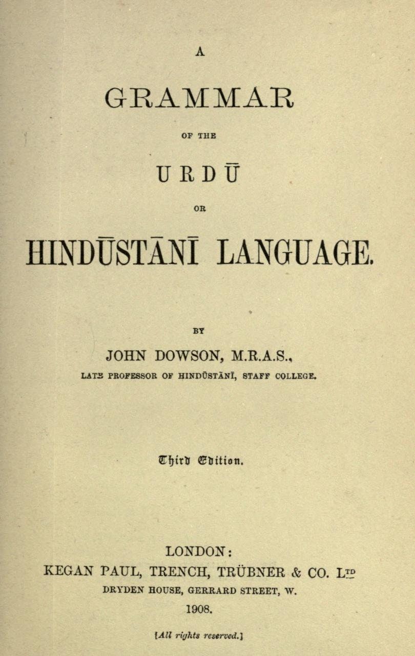 A grammar of the Urdu or Hindustani language - J. Dowson (1908)