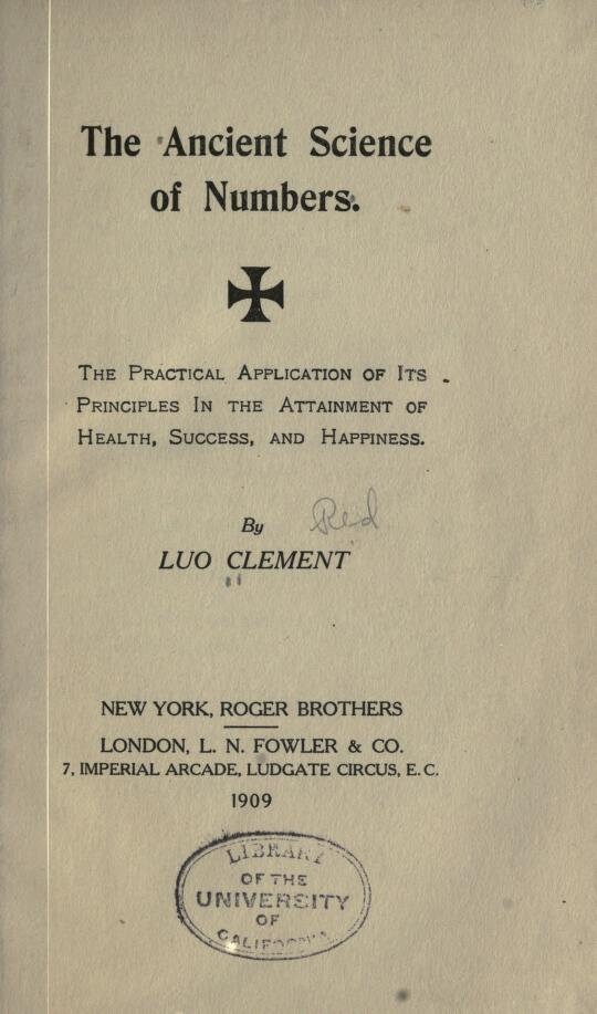 The ancient science of number - the practical application of its principles in the attainment of health, success, and happiness - L. Clement (1909)
