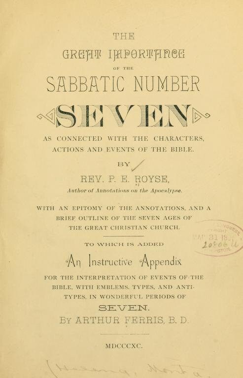 The great importance of the sabbatic number seven - P. Royse (1890)